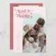 Vintage och enkelt tack för bröllop med ett kort som innehåller en vit båge ram med en text som säger "kärlek & tack" i ett stil-stift med stjärnor i rosa. Standardmeddelandet på baksidan kan redigeras. En andra kvadrat bild kan läggas till på kortets baksida.