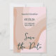Rosa Retro Wave Bröllop spara datum-inbjudan En snyggt modern bröllop spara datum med elegant svart skript på en rosa, brun och terracotta-reflexbakgrund. Anpassa med din händelseinformation.