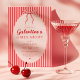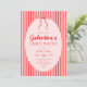 Rosa röd Galentine-fest inbjudan med en handritad slinga och trendiga ränder.