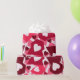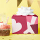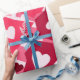 Valentines day som slår in papper med ett rosa, röd och vithjärtamönster