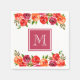 Rosa Röd Orange Blommor Monogram Pappersservett