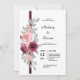 Rosa Röd ros bröllopsinbjudan. Den här enkla inbjudan och inbjudan till elegant bröllop har en vacker moody rosa och blomma från röd ros med en vismisk kalligrafi och ett klassiskt serif-teckensnitt. Om du vill göra avancerade ändringar väljer du alternativet "PERSONALIZE" under Anpassa den här mallen.