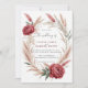 Rosa Röd ros Pampas Boho bröllopsinbjudan Inbjudningar