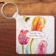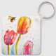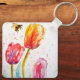 Rosa röd tulpan och bin akvarellmålning bröllop nyckelring