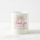 Rosa rodnad rosett band flickas 7-årsdag tack kaffemugg. En modern feminin design i mjuka rodnadstoner med detaljer i form av ömtåliga rosetter och ett trendigt vattenfärgskoquettdrag. Elegant handskriven skrift framhäver “Tack” för en chic, stilren touch. Perfekt för en elegant prinsessa och flickig födelsedagsfirande. Lätt att anpassa med dina egna festdetaljer.