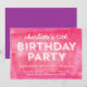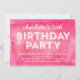 Modern Födelsedagsfest inbjudan med ord "Födelsedagsfest" i vitt mot en rosa rullad bakgrund i bläck mönster som är perfekt för alla åldrar. I födelsedagsinbjudan ingår en baksida av lilan. Kolla in andra födelsedagsinbjudningar här https://www.zazzle.com/collections/childrens_birthday_invitation-119229052564655496?rf=238364477188679314 och här https://www.zazzle.com/collections/birthday_invitations_for_adults-119400127857134028?rf=238364477188679314 Anpassa den genom att ersätta platshållartexten för att lägga till din information. Om du vill ha fler alternativ klickar du på knappen "Anpassa". *Observera att Zazzle Watermark som visas i zoomförhandsvisningen INTE visas på den färdiga tryckta produkten. © Rosewood and Citrus