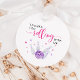 Födelsedagsfesten på en kula med rosa- och lila-stjärnor som slår till i stift med en skäggsglapp. I texten står det: "Tack för att du rullade med mig."