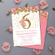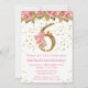 Rosa ros Blommigt 6e födelsedagsfest inbjudan för en 6-årig flicka med modernt skribent och guld glitter.