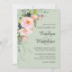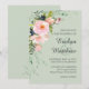 Rosa ros Blommigt Bouquet på Sage Bröllop Inbjudningar