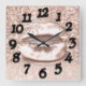 rosa ros Blommigt Glitter Kiss Läppar Numbers Beau Fyrkantig Klocka