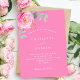 En rosa bakgrund. Dekorerad med en rosa blommigt, ro blomma och grönt vattenfärgad eukalyptus löv, sprig, grönsak och faux guld sprigs. Anpassa och lägg till information om namn och bröllop.