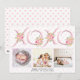 rosa ros blommigt XOXO-fotokort för Valentines day. Texten "XOXO" i dekorativ typografi och tre foton visas. Baksidan har en mönster av rosans hjärtan. Ett foto är foto av fotografi © Storytree Studios, Stanford, CA