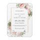 Ett vackert och traditionellt val för Spara datum magneter. Mjukt rosa ros förskönar ett tunt guld ram. Dina uppgifter om bröllop är skrivna i en kombination av serif och italic typsnitt. Det mjuka grått färg kompletterar pastellerna ro och sage grönt löv.