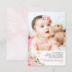 Storfärgad rosa ros och ornate kor blommigt Flickfoto "Baptism" "Tack"-design med faux rosa marble-bakgrund på baksidan. Lägg bara till foto, unikt meddelande och slutning, barnets namn och året. Sammansatt design efter Helgdag Hearts Design (reserverade höger) med platshållarfoto via Pixabay.