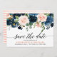 Fin blommigt boho bröllop spara datum har handmålad blommigt med vattenfärg / ro i rik av marinblått och rosa / persika och charmerande handstil med stil. Kontakta mig om du behöver hjälp med anpassning eller om du behöver någon annan produkt med den här designen.