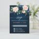 Rosa ros Boho-Bröllopet OSA för marinblått Kort