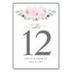 Lägg till en elegant till din dekoration i bröllop bord med de här moderna bordsnumren i rosa ros i blommigt. rosa ros som är kapslat i sage grönt skapar en klassisk arrangemang överst. Bord är skrivet i ett trendig-skript. Bordsnumret är skrivet i ett stort grått med fetstil och mörk. Datumet bröllop par namn och bröllop ligger under.