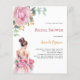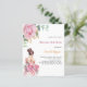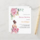 En modern, snyggt och glamorös inbjudan till möhippa. En vit bakgrund som dekorerats med ett stort rosa ros, bruden med en bröllop-klänning. Namn är skrivet med ett modernt handskript i stil. Anpassa och lägg till information om party. 1 lakan = 1 inbjudan tryckt kant till kant.