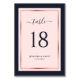 Elegantens marinblått och ro guld bröllop-bordsnumret. Anpassa enkelt bordsnumrets kort för marinblått och ro guld bröllop med uppgifter om bröllop.