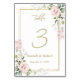 Rosa ros Bröllop Bordsnummer-kort Bordsnummer