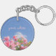 Den här nyckelkedjan har en rosa ros-buske under blå himmel. Söt individtänkbar presentidé för kvinnor!