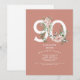 Rosa ros Elegant 90:e Födelsedagsfest inbjudan