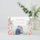 Elegantens romantiska foto av blommigten för rosa med bröllop spara datum-vykort som innehåller vackert ro med vattenfärg med grönt löv och löv. +++++++++ Enkel att anpassa med ditt foto och din text på båda sidor! ++++++++++ Lämpligt för trädgårdstema, blommigt, sommar- eller höstgård utomhus eller vid rumslig modern ladugård eller bröllop.
