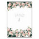 Söt bröllop bord-kort med vackra accenter för gräns, eukalyptus och löv i rosa ros. Matchningsinbjudan, OSA, pappra blöjor och tallrikar finns också.