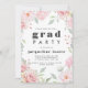 En inbjudan till söt studentfest med ram av bedövande vattenfärgen ro, grönt löv och faux glitter accents. Party-detaljerna finns i mörk grått, med en blandning av modernt serif- och sans serif-teckensnitt. Baksidan är i fast ljus rosa.