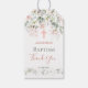 Baby Baptism/Christening Tack Gift Märkre. Den här designen har en vattenfärgstryck som illustrerar blek rosa ros och gröntar i blad.