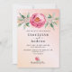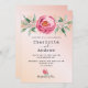 En övertoningsbakgrund för ro guld och rosa. En stor rosa vattenfärgad ro, löv med små guldblommor. Anpassa och lägg till information om namn och bröllop. Black brev. Tillbaka: Ro guld, rosa.