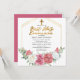 Elegant och klasslig rosa och vit ros blommigt med sage grönt grey girl ’First Heliga Communion’ script text design with geometric guld-toned linjer ram.
