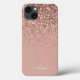 Ro Guld - Rosa Faux-Gnistran och Dripping Glitter Brushed Metall Monogram Namn och Initial Mobil. Det gör perfekten söt 16-årsjubileum, bröllop, möhippa, årsdag, babydusch eller bachelorette-fest för någon som glam lyxen och chic stilar i kärlek.