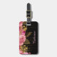Den här söt bagagetaggen har en rosa ros och guld-lövbukett på en dramatisk svart bakgrund. Att gå från buketten är en bild av en liten guld-belagd ridå. Vid grund står ditt namn eller annan anpassningsbar ljust rosa. Baksidan av märkrn är svart med anpassningsbarna vit.