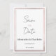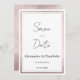 En modern chic som pressar eleganten till rosa, silver och ro glitter, lyxinbjudan till guld är Bröllop spara datum för alla klassmässiga och sofistikerade ceremonier. Den här krävande snyggten som bländar det geometriska trendiget är perfekt för trendiget och eleganten eller vem som helst. Anpassa den här designen med egen information om meddelande och personlig. Alla designer skrivs ut.