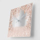 Rosa ros Guld Spark Blommigt Glitter Grått Fyrkantig Klocka