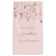 En presentpåse för en 21:a (eller någon annan ålder) födelsedagsfest. En chic med låg och färgad för rosa. Dekorerad med ro guld-stjärnor. Anpassa och lägg till ett datum, namn och 21 år. Namn är skrivet med ett modernt handskript i stil.