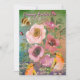 Vackert kort vår Påsk Helgdag med fåglar, bin och mjuka rosa blommor/ro. All text är anpassade.