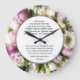 Vackra rosor och vita blommor läggs i ett ram runt hebreiska och engelska för Home Bluting. Den här klockan lägger till en underbar blommigt accent till vilken vägg som helst.