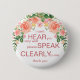 Vill du göra folk medvetna som du inte kan höra tydligt? Vill du ha en söt knappbricka? Denna bricka för hörselskadade med rosa ros är elegant men förmedlar ändå budskapet om din hörselnedsättning. En underbar gåva eller ett strumpfylleri för en döv kvinna eller flicka. Ro är unikt för Stationery Concierge.