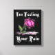 Blomdesignen har ett enkelt, ensamt rosa ros som vilseleder i förtvivlan med ord, "jag känner din smärta" i morostypografi. Vissa människor kan känna andras smärta, men ord ensam uttrycker det inte alltid. Detta är ett sätt att visuellt uttrycka sin sorg över andras förtvivlan. Den här designen är till för alla som är visuellt poetiska eller bara på melankoli humör.