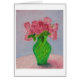 Dessa intoxicatingly dofta ro kom från en rosa buske för klättring i perfekt blom på en solig Juni dag i Chicago. Denna affisch skapades från min original- oljemålning, som markerar ro till och med skurkrollen som högt textureras, målar applikation i flera skuggar av rosa och rött. Gult slår blandat in i vasen antyder på ro stemsstunderna som föreslår midafternoonsolskenet som filtrerade till och med det gröna exponeringsglaset, då denna målning skapades. Handlag av rosor i lavendelbakgrunden såväl som slår tjockt av ljust - rosor i baksidaen av bord, av grönt till höger av vasen och av mörkare rosor i förgrundshjälpen harmoniserar och enar detta biet därför att dem repetition färgerna i blommorna och vasen.