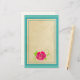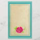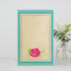 Ett enkelt exempel på ett rosa ros med grönt petaler och ett snabbt stam.. Ett trevligt parchment struktur till skriva på, omgivet av en turkos gräns och en ljust grönt bakgrund.