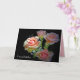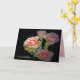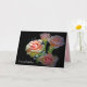 Upplyst rosa och persika bukett med rosor med pärlhjärtan i svart på födelsedag.