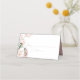 Placera kort med rosa och grönt hummingbird och rosa ros och knoppar med grönt. Dekorerad fram och bak med blommor och en hummingbird.