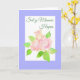 Ett söt Mors dag-kort med hälsning på walesiska och en pott av rosa Albertine ro från en vattenfärgsmålning av Judy Adamson.