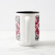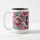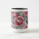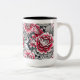Vit mugg tryckt med digital konst rosa ros med svart insida.