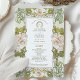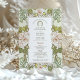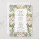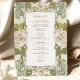 Det här vintage-inspirerade bröllopsprogrammet är en vacker återgivning av Art nouveau-design, med elegant rosa ros och blommigt av mjuk grönt. På kortets framsida välkomnas gäster med ömtåliga blommor, omgivna av snurrande vindruvor av grönt, vilket ger en naturlig och sofistikerad beröring till den övergripande utformningen. Den mjuka beige bakgrunden står i perfekt kontrast till lush botanical inslag, medan den subtila användan guld accents tillför en aning tidlös lyx. Tvärtom är detaljerna för bröllopsfesten inramade i samma komplicerade blommigt, vilket garanterar en sammanhängande och konstnärlig känsla. Denna utformning är idealisk för par som vill ha ett förfinat, elegant och naturinspirerat bröllop.