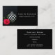 En stillastående livsdesign med en svart bakgrund med en rosa ros som lägger sig bredvid ett svart och vitt schaktat vas. affärskort för professionell som kan vara lämplig för dekoratorer, konstruktörer för insida, evenemangsplanering osv.