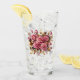 Glaset har rosa ros och guldfärgat löv. Den är tryckt på båda sidor.